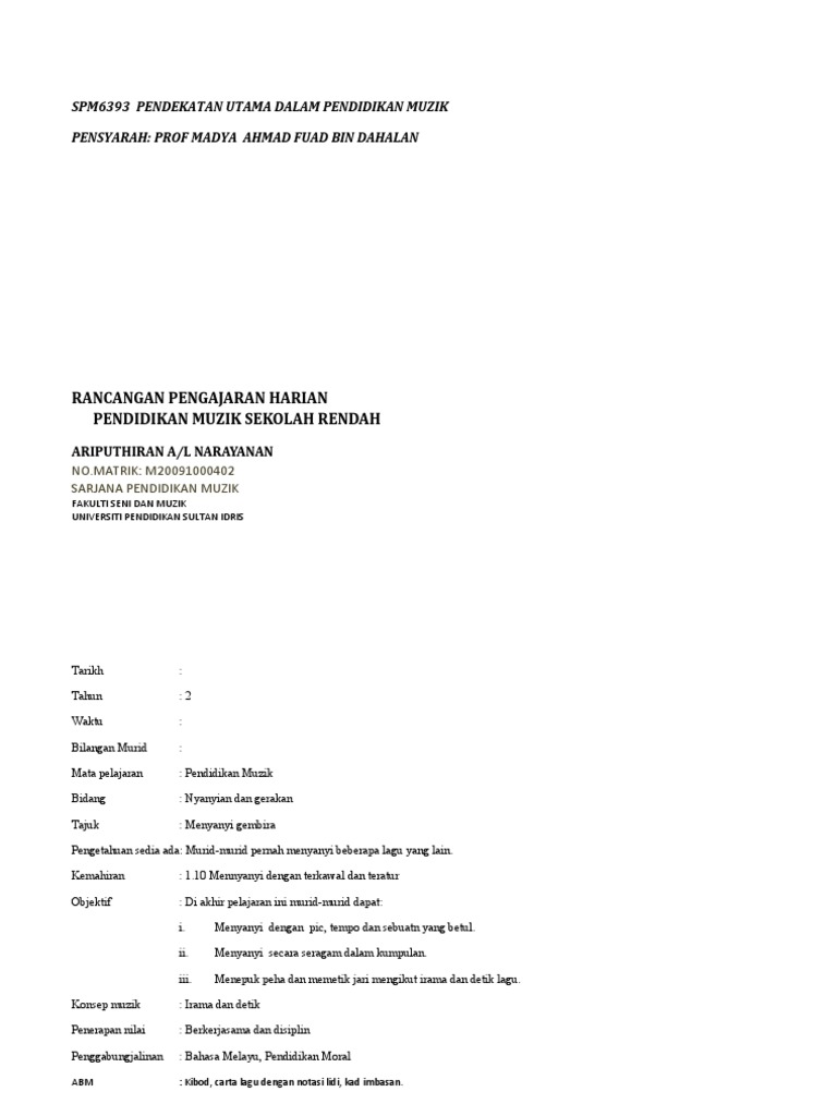 Rph Muzik Tahun 6 Setahun - Rancangan pengajaran harian (rph) ialah satu rekod khas yang disediakan lebih awal oleh guru sebelum menjalankan sesi pengajaran dan pembelajaran.